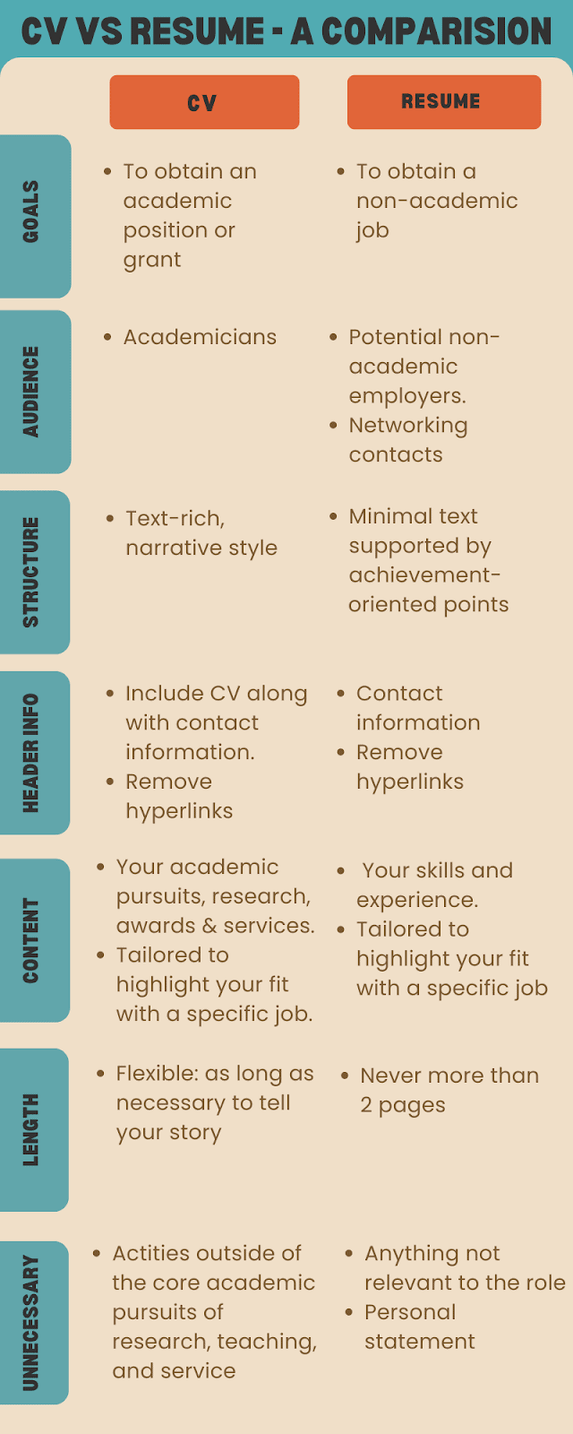 5. Content Emphasis: CVs prioritize academic achievements, research experience, and publications, while resumes emphasize relevant work experience, skills, and accomplishments.